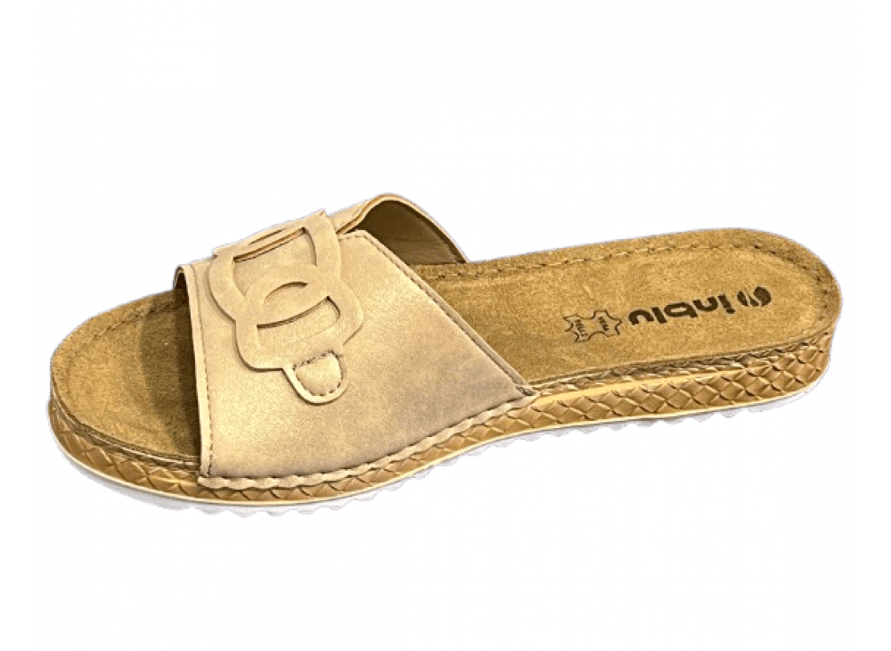 Жіночі шльопанці Inblu VO-1 026 золотистого кольору - зручне та практичне взуття для теплого сезону. Модель доповнена м'якою устілкою, яка дарує приємне відчуття комфорту при кожному кроці, а делікатна амортизація допомагає зробити ходьбу більш м'якою та легкою. Золотистий відтінок виглядає акуратно і жіночно, легко поєднується з повсякденним літнім одягом. Шльопанці зручно сидять на нозі, швидко одягаються і підходять для дому, відпочинку, поїздок та щоденного носіння. Це гарний вибір для тих, хто цінує комфорт, легкість та акуратний зовнішній вигляд в одній моделі.